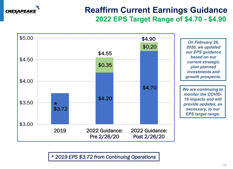 Capital Investment Guidance Continued Record Investment in Our Business to Drive Growth $350,000 $303,153 Target 2018 – 2022 : $750 million - $1 billion $300,000 $282,861 $250,000 $215,000* $250,000 Reach $1 billion $198,986 $200,000 $30,000* $150,000 $185,000* $100,000 $50,000 Reach $750 $53,153 $0 2018 2019 Budget 2020 Target 2021-2022 *We will continue to update this forecast as we move through the year, including any capital deployment delays resulting from COVID-19. Management reaffirms its five year capital expenditure guidance of $750 million to $1 billion. From January 1, 2018-March 31, 2020, of the five-year forecasted period through 2022, the Company has invested $523 million on new capital expenditures. 25 Capital Expenditures in thousandsCapital Investment Guidance Continued Record Investment in Our Business to Drive Growth $350,000 $303,153 Target 2018 – 2022 : $750 million - $1 billion $300,000 $282,861 $250,000 $215,000* $250,000 Reach $1 billion $198,986 $200,000 $30,000* $150,000 $185,000* $100,000 $50,000 Reach $750 $53,153 $0 2018 2019 Budget 2020 Target 2021-2022 *We will continue to update this forecast as we move through the year, including any capital deployment delays resulting from COVID-19. Management reaffirms its five year capital expenditure guidance of $750 million to $1 billion. From January 1, 2018-March 31, 2020, of the five-year forecasted period through 2022, the Company has invested $523 million on new capital expenditures. 25 Capital Expenditures in thousands